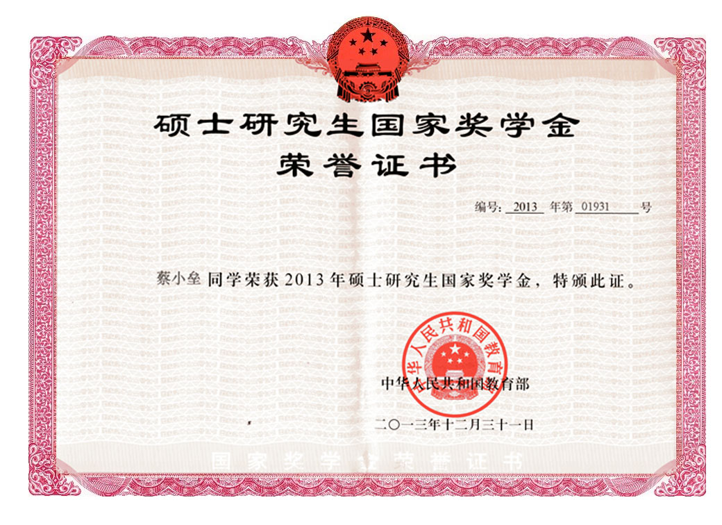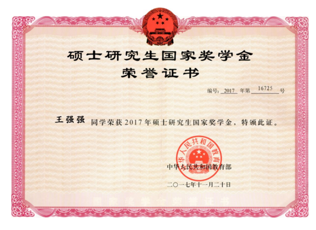 [2] 课题组指导的研究生多人荣获“国家奖学金”。如:北京化工大学2011级硕士研究生蔡小垒2013年荣获,本校机械工程领域2012级专业学位硕士研究生沈玮玮2013年荣获,本校机械工程领域2014级专业学位硕士研究生程玉雪2016年荣获,本校机械工程领域2015级专业学位硕士研究生王强强2017年荣获。