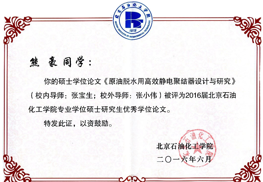 [1] 课题组指导的本科生毕业设计环节表现良好,本硕互动融洽。累计10余名同学的学位论文被评为“北京石油化工学院优秀毕业设计(论文)”,涉及过程装备与控制工程、环境工程和油气储运工程等3个本科专业,通过建立指导教师带领下的本硕“一对一”模式,大大提高了本科同学解决复杂工程问题的能力;指导本科生公开发表学术论文10余篇。